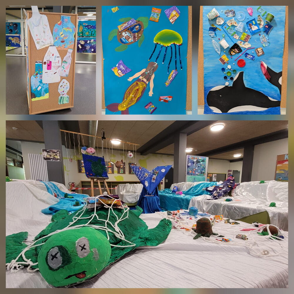 Mit dem Projekt „Kunst gegen Plastikflut“ haben die Klassen 6-9 unserer Schule ein starkes Signal für Meeresschutz und Nachhaltigkeit gesetzt. Die Schülerinnen und Schüler gestalteten kreative Werke, die auf die zunehmende Verschmutzung der Meere durch Plastik aufmerksam machen. Aus Flaschendeckeln und alten Verpackungen wurden Schildkröten und Wale. Das Ergebnis der Arbeiten ist eine Ausstellung voller Farben, Fantasie und einer klaren Botschaft gegen die Plastikflut!