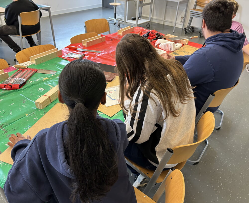 Heute musste sich jede Gruppe für ein Projekt entscheiden, bei dem wir Gewerbe-Objekte bauen sollte. Es gab die Projekte „Krankenhaus“, „Bank“, „Restaurant“, „Autohaus“ und „Metallhaus“. Um zu einem der Themen etwas zu gestalten, hatten wir zwei Tage Zeit. Wir arbeiteten mit Holz, Kartonage, Papier und konnten auch etwas Löten, wie zum Beispiel Lichterketten. An den Projekten haben alle gut in Teamarbeit gearbeitet. Zwischendrin hatten wir kurze Pausen zum Essen und Trinken. Bei Fragen konnten wir uns an Herrn Vogel wenden, der uns gut beriet.